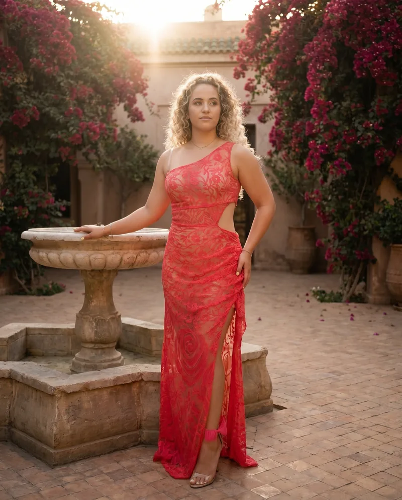 Coral lace one-shoulder column